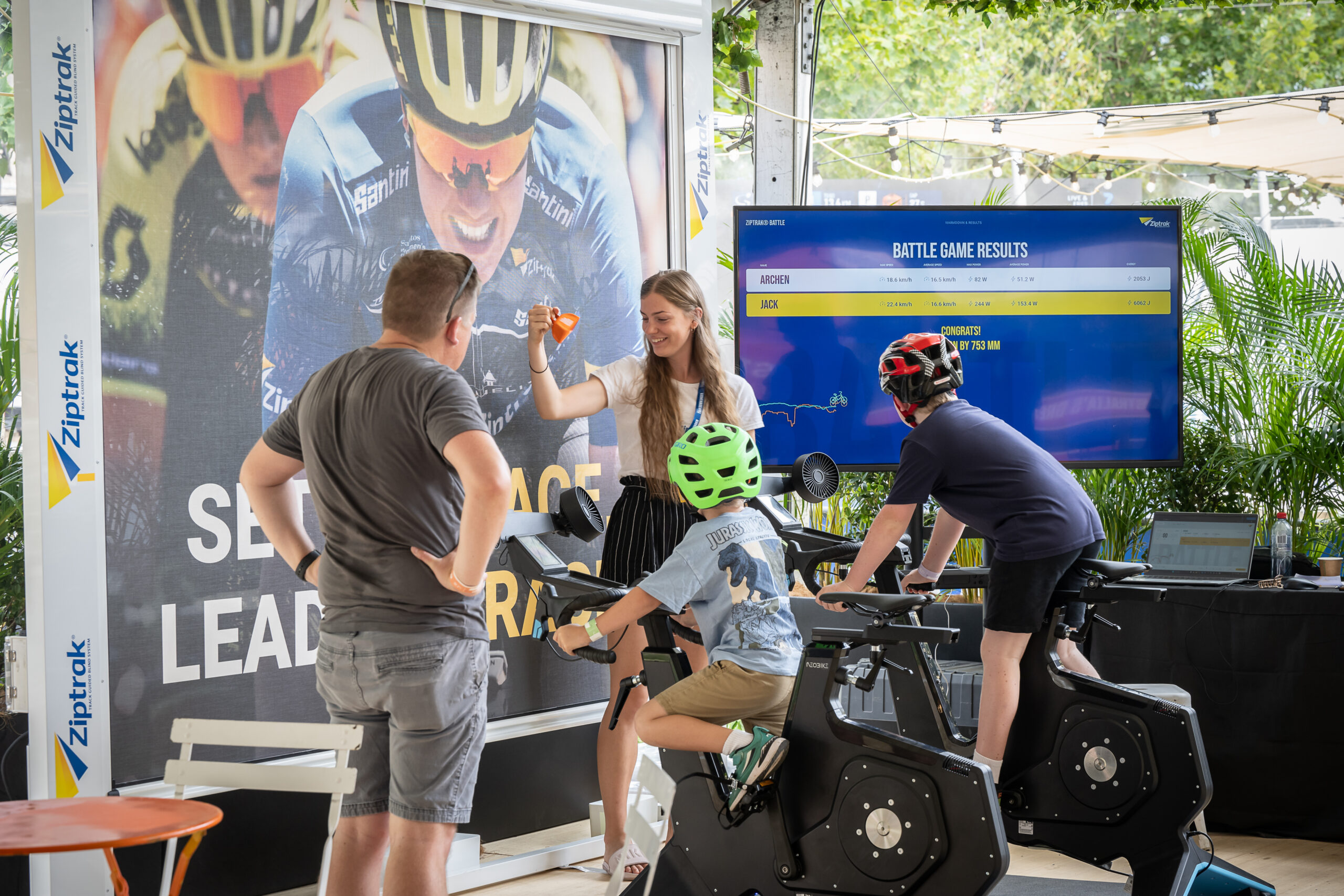 This year’s Ziptrak® Racer activation in the Tour Village not only brought a thrilling experience but also featured an array of exciting prizes. Participants had the chance to win a daily random draw for a 35% off Garmin Cycling Products voucher, adding an extra layer of excitement for all attendees. Additionally, two Garmin Edge 540 Solar bike computers were awarded as prestigious prizes—one for the person covering the longest distance over the 20-second timeframe during the 10-day event, and another for the person who accurately guessed the max power output from Kristina Clonan, Commonwealth Games Gold Medallist Track Sprinter, on the Ziptrak® Racer, adding an element of anticipation to the competition.